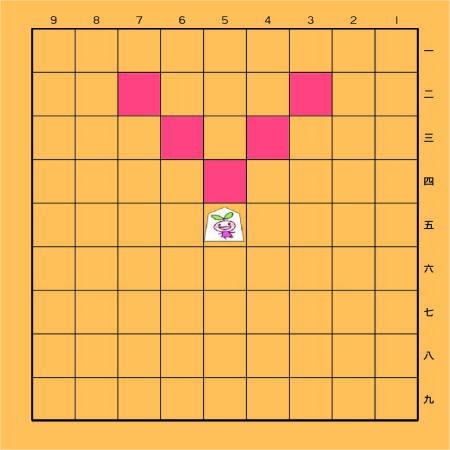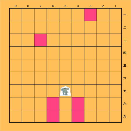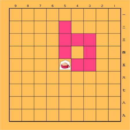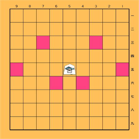 成れない。 成った場合、 白いマスになり 動けなくなる。 |