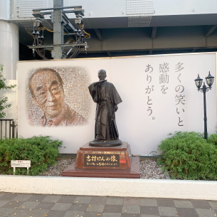 記念館は無いが、志村けんの功績を称えた銅像が駅前に建てられている。