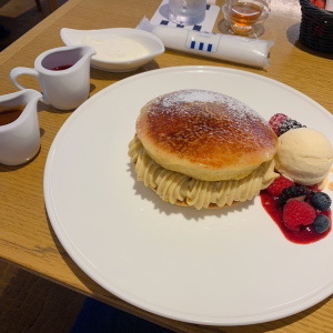 パンケーキも良かったけど、一緒に付いてきたベリーソース、キャラメルソース、生クリームがとても良い。