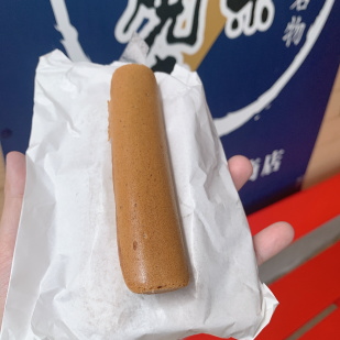 「カステラよりももちもちした、鮎のカステラみたいな生地で、沖縄の黒糖が練り込まれた、ほんのり甘くて、おいしい食べ物だった。」とのこと。