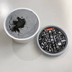 鉄をイメージした灰色のアイスに、鉄粉が含まれた粉がかかっている。